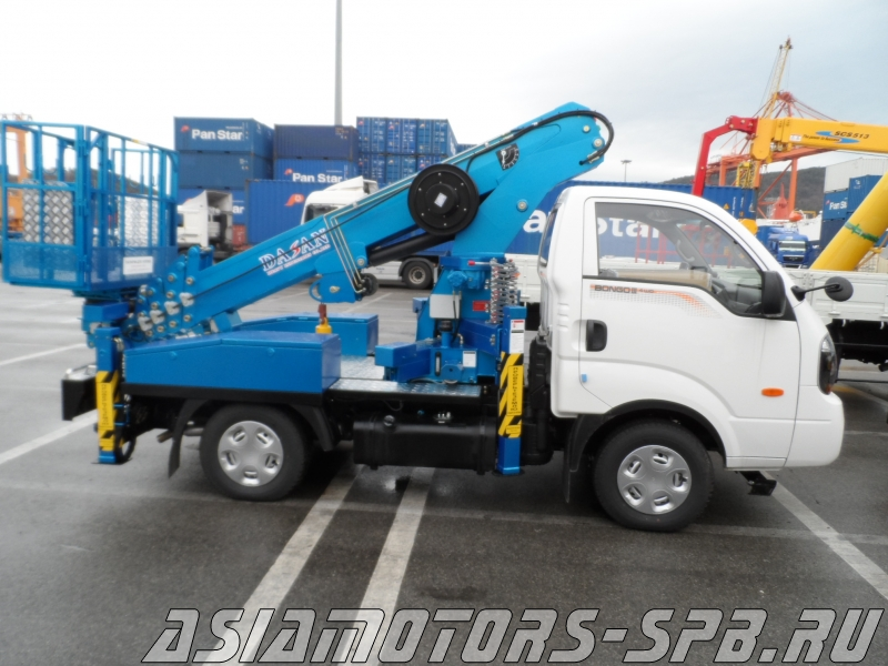 Автовышка базируется на шасси бортового грузовика Kia Bongo III. Грузовик, благодаря своей компактности и манёвренности, с успехом эксплуатируется на узких городских улицах и проездах. Kia Bongo III вынослив, качественно собран, класс экологической безопасности - Euro 5.
