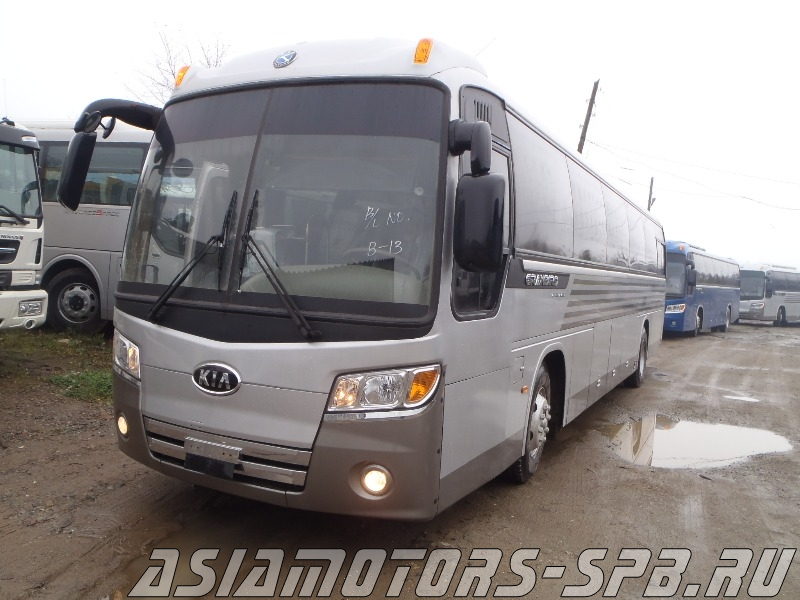 Туристический автобус KIA GRANBIRD New Model, 2012 г.в., 2 двери, 45 2 места, двигатель дизель D6AC, 11149 см3, 340 л.с., EVRO IV, МКП, пневмоподвеска, котел подогрева, кондиционер, вытяжка, холодильник-бар, кулер (диспенсер), TV-ЖК, DVD,аудиo система, тонировка, камера заднего вида, новые шторы, новые чехлы, новая резина, полная предпродажная подготовка, ремни безопасности, без пробега по РФ.